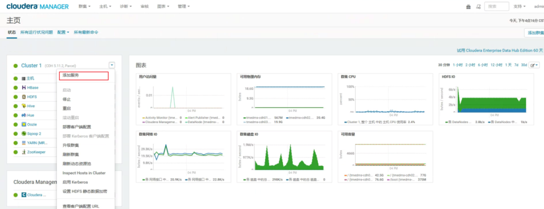 使用CM(Cloudera Manager),我们可将集群自动化安装、中心化管理、集群监控、报警处理等功能融为一体。集群的安装可以从几天的时间缩短为几个小时,运维人员也会从数十人降低到几个人,这更适合我们的工作所需,将繁重的运维管理工作剥离出来,将工作重心集中的业务开发中。