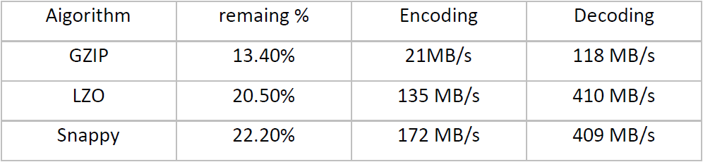 启用压缩可以大大提高集群的可用性,scan性能显著提升。目前HBase默认支持的压缩包括GZ、LZO以及Snappy,测试对比之后选择Snappy压缩算法。